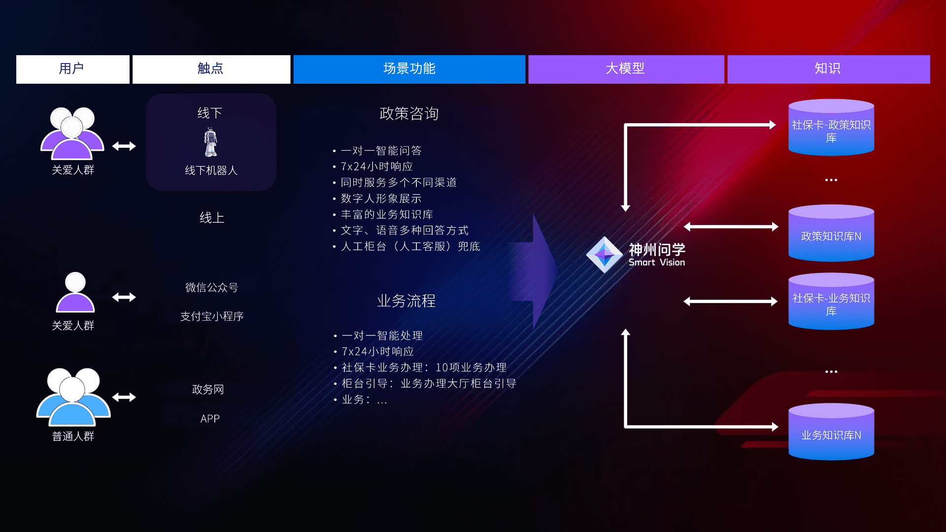 在服务大厅部署客服机器人,,在线上应用和小程序配置客服数字人,,724小时为群众解答常规问题,,,客服机器人无法处理的,,,,转现场人工处理。。